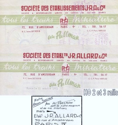 …. Il quale , oltre a vendere materiale delle principali marche dell’ epoca , iniziò subito a costruire treni , rotaie , accessori con il marchio JRA oppure J.R. Allard .