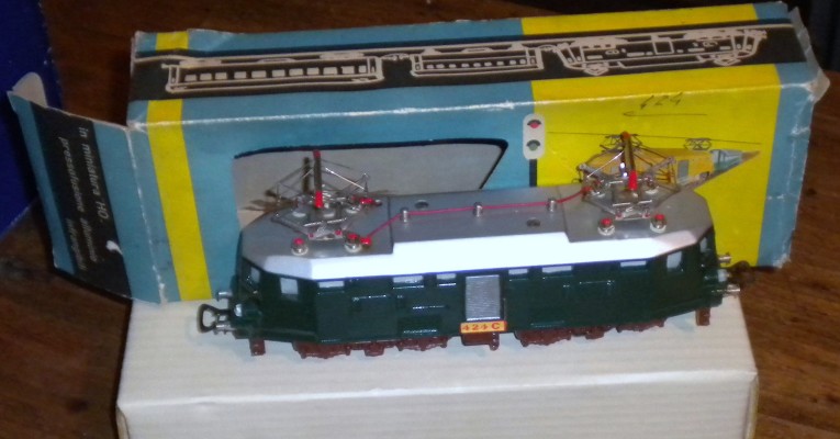 Rara colorazione verde con tetto grigio di locomotore 424 ultima produzione Oreste Cicchetti